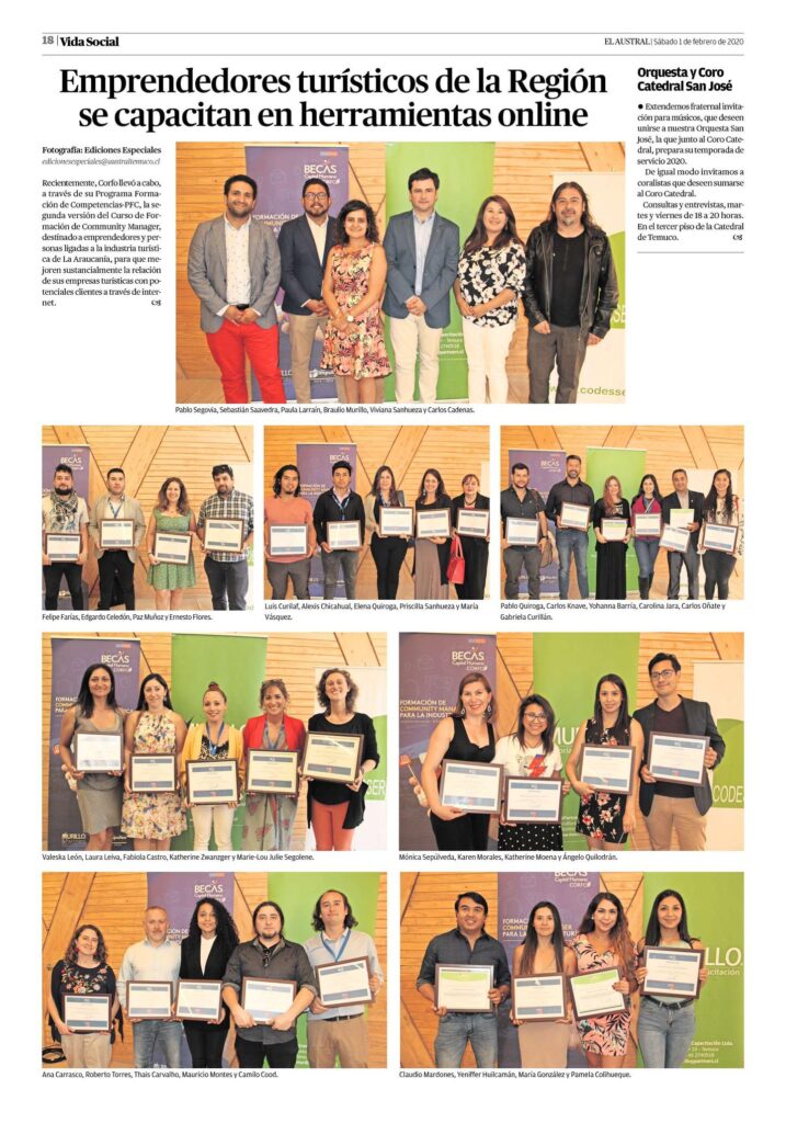 Programa de formación para 80 emprendedores y emprendedoras del Programa Potenciar el Capital Humano en zonas de rezago Costa Araucanía.