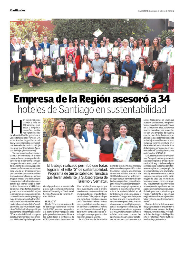 Asesoría en la implementación de Sellos de Sustentabilidad Turística para 34 Hoteles de la región Metropolitana.